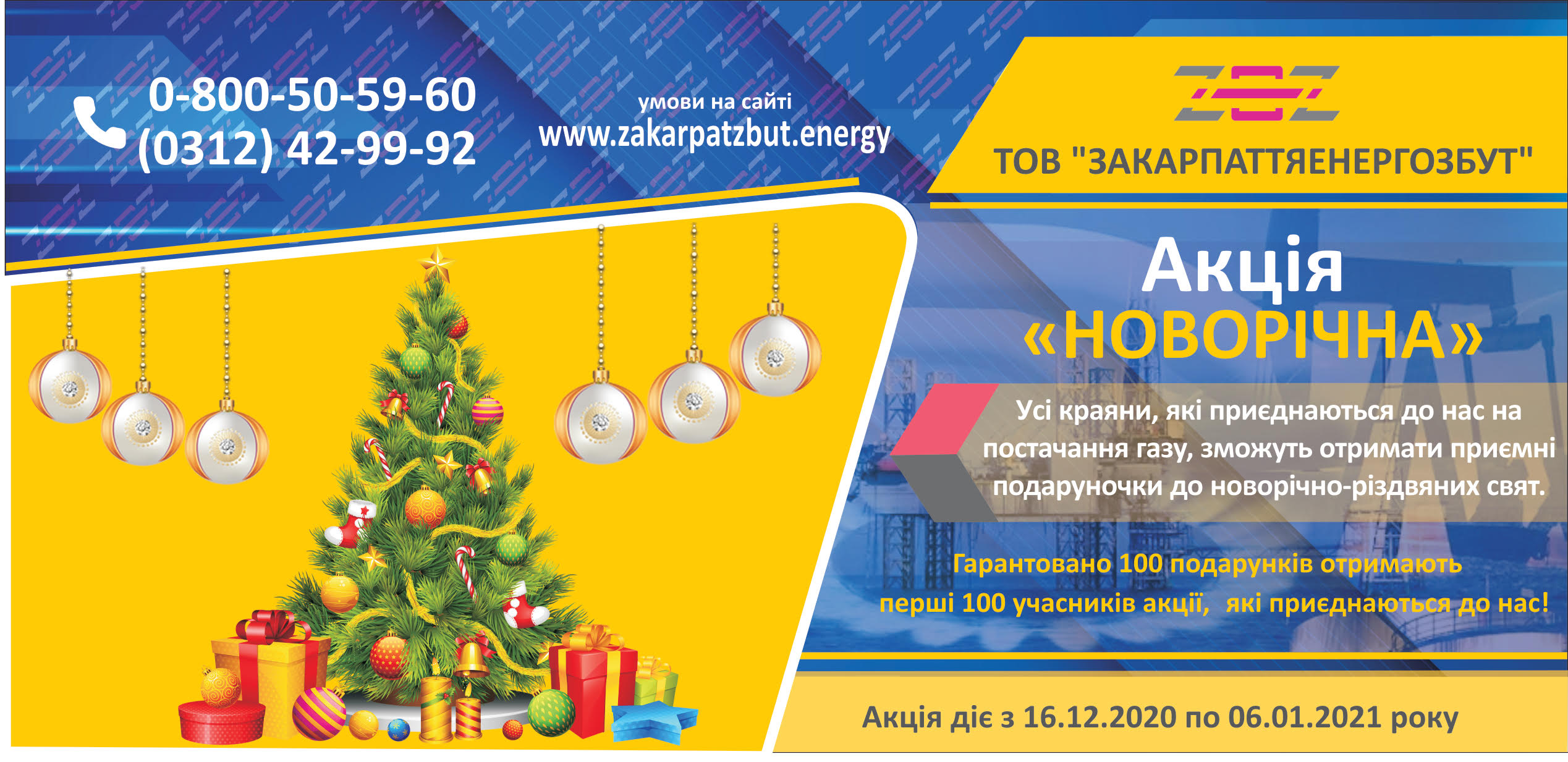 Акція «Новорічна» від ТОВ «Закарпаттяенергозбут»: приєднуйся до наших умов постачання газу і отримуй подарунки!