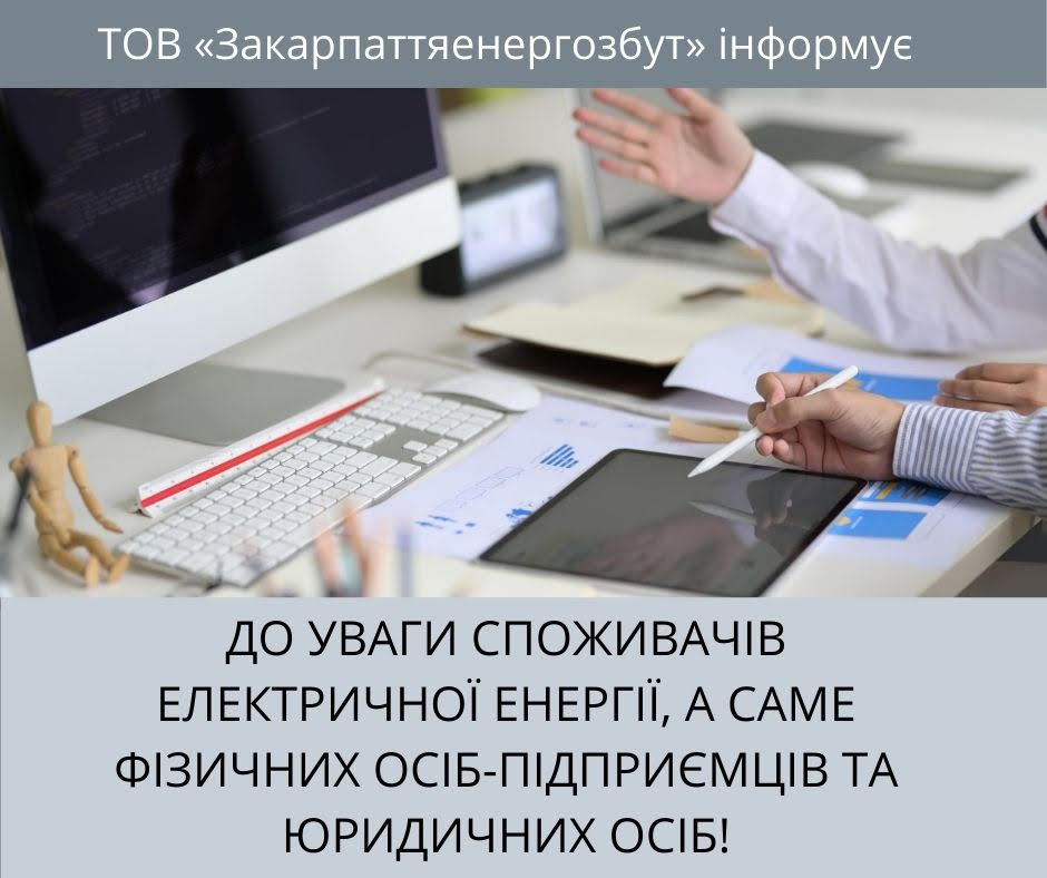 До уваги споживачів електричної енергії, а саме фізичних осіб - підприємців та юридичних осіб !!!